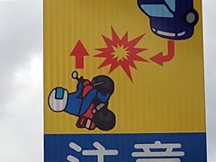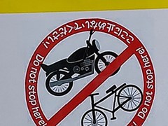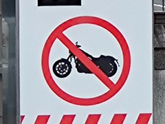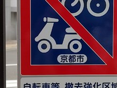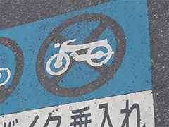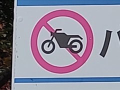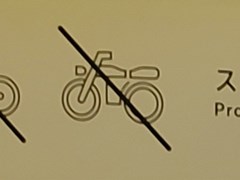 それより、「バイク」のピクトグラムに斜めの線が入っていたり、痛い目に遭うものが目につきますやん。