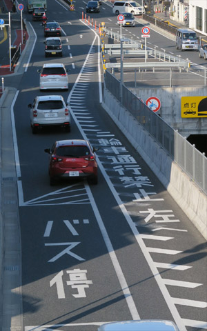 (↑)これは導流帯ではなく、停車禁止の模様、の模様(ダジャレではない)。