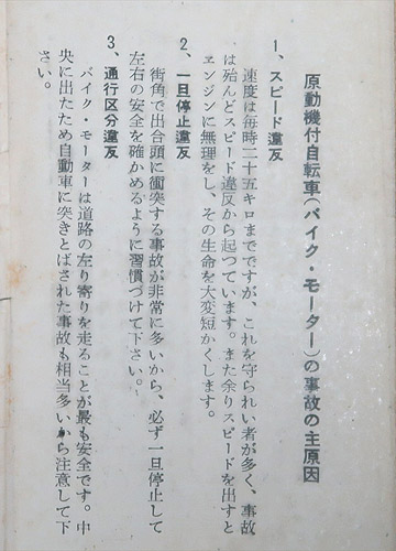 注意書きに書かれている原付事故の主な原因が、今も昔も変わらないところが進歩してへんなぁと思ったり、
