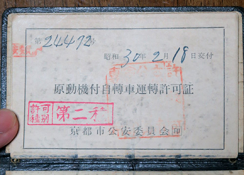 なんとその原動機付自転車運転許可証が出てきましたので、ここに公開しちゃいます。