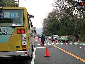 京都市内での交通社会実験は、嵐山の一方通行実験、五条坂の一般車締め出し実験に続いて3例目です。