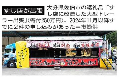 二ホンで、いや世界でたった一台の「寿司店に改造した大型トレーラー」が出張し、