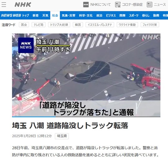 今年(2025(令和7)年)1月に埼玉県南部で発生した、大規模な道路陥没。