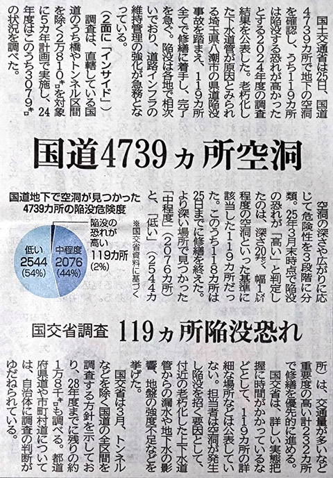 その結果、全国の国道において空洞があったのはなんと4739ヶ所。