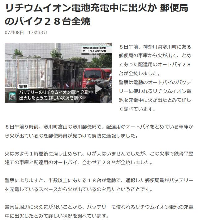 そんなリチウムイオン電池が大きな被害を生み出したかも?なニュースが流れてきました。