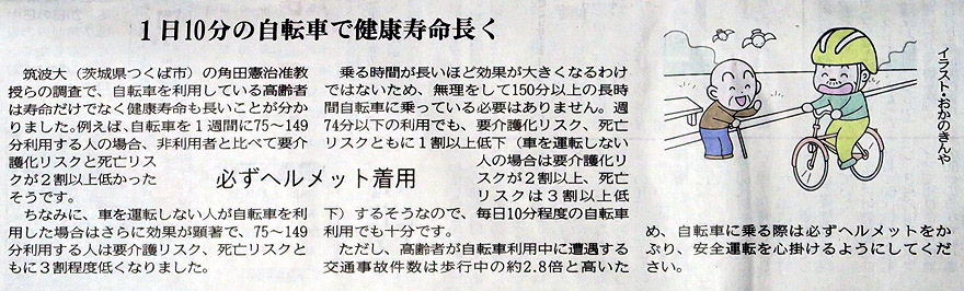 そんな自転車に、有為な調査結果が新聞に載ってました!