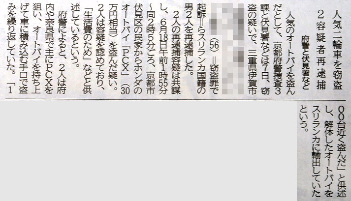 地元紙に掲載された「人気二輪車窃盗」のタイトルに目が行きました。