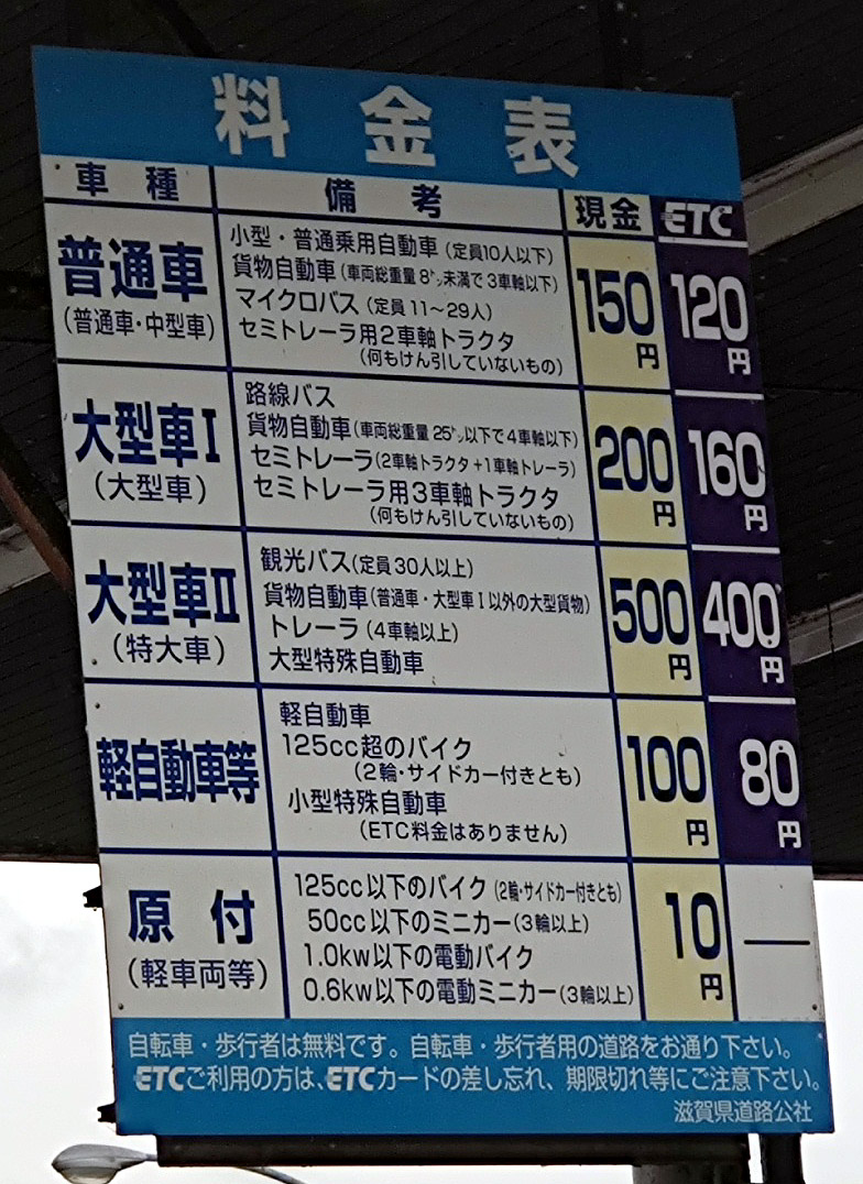 ※近江大橋の原付の通行料金は20円でしたが、2013年12月26日に無料開放されました。