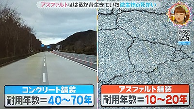 ・交通量の多いところだと傷んで、数年おきに舗装をやり直さなきゃならないし…デメリット全開やん。