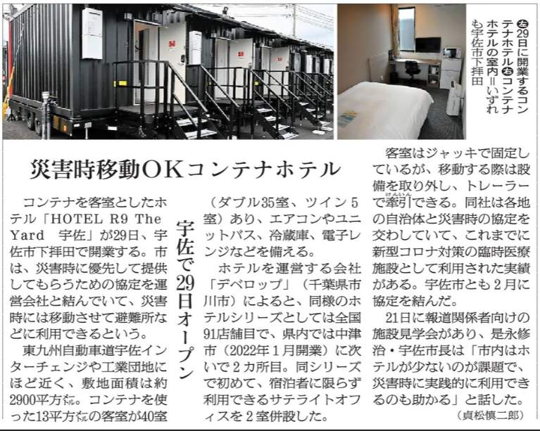 記事にもあるように、災害時に転用や、宿泊場所の少ない地域に出張するのもアリでしょう。