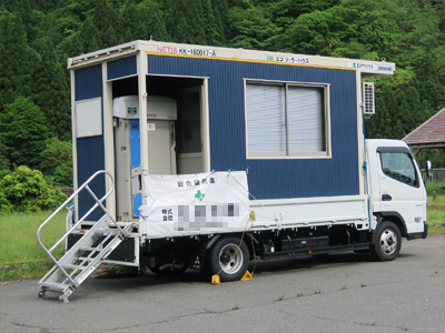 平ボディの2tトラックの荷台にプレハブ小屋が乗ってるだけのように見えますが、