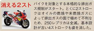 それからというもの、年々その基準が厳しくなっていき、そのたびにバイク界は悲鳴を上げることになります。