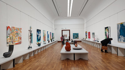 日本画、洋画、書、工芸美術、彫刻の5つの部門からなる総合美術展です。