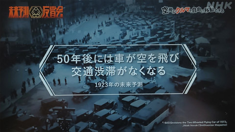 ニホンに車がちょっぴりしかなかった時代に、既に「50年後には車が空を飛ぶ」…と未来予測がされていたんです。