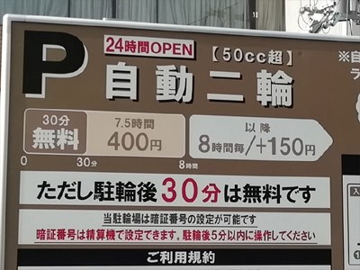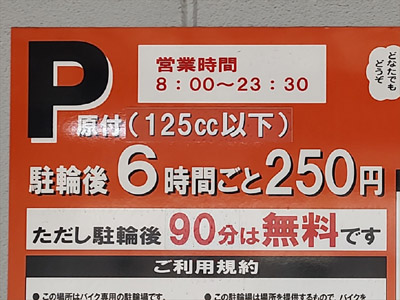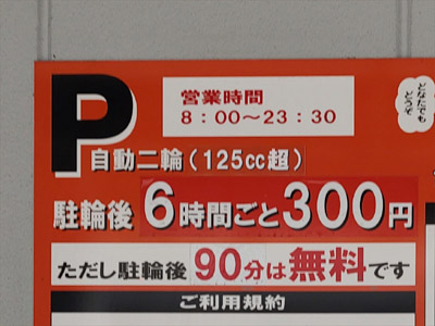ま、二輪車の駐輪だと、買い物をしなくても○時間までは無料…とか免罪措置(大げさ)がありますので、