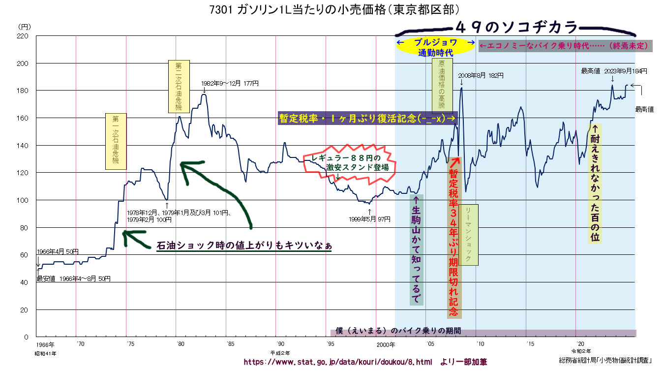 ここ2年ほどの急激な物価高に泣かされていますが、ガソリン価格も負けじとうなぎ登りです orz