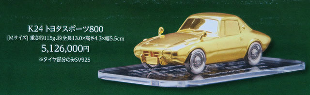 その中にトヨタの名車が!車をモチーフにした金細工は初めて見ましたわ。