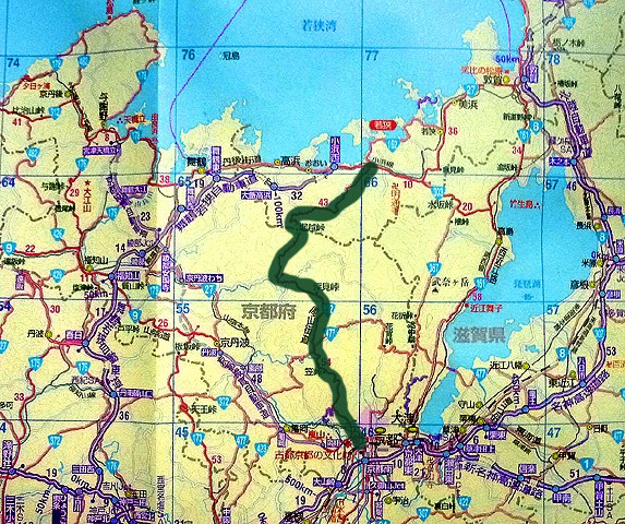 京都市内〜福井県小浜市を南北に結ぶ延長90km余りの国道162号線、
