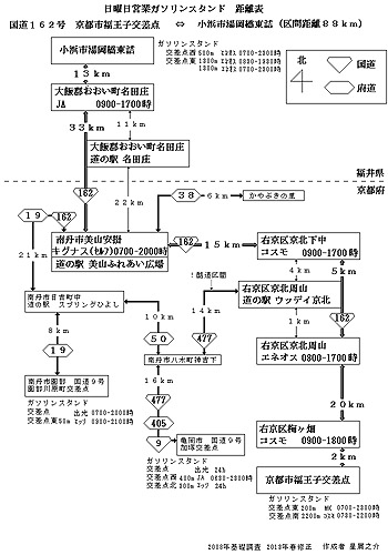 日曜日に営業しているガソリンスタンドと区間距離表を作ってくださいました。
