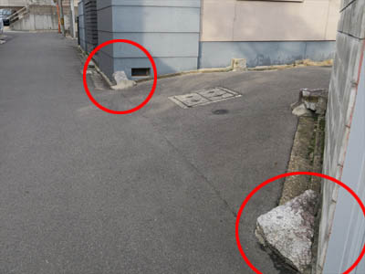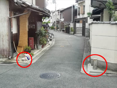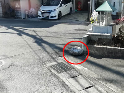 不思議なことにこのイケズ石、どこをどう見てもそこ公道やんって所に置かれているものであっても、撤去されません。