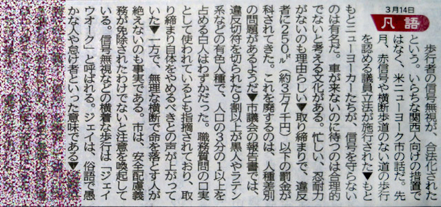 外国に来てよくそんなことができるなと呆れていたら、僕の心を見透かしたような文章が新聞の一面下に載ってました。