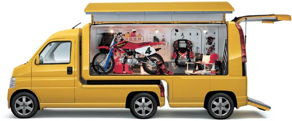 紹介例では、バイクを積んでレースに行くトランポ代わりになっていますが、