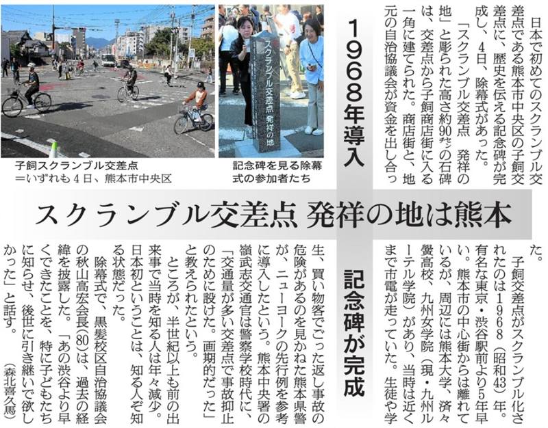 スクランブル交差点を二ホンに最初に「輸入」したのは熊本!!!