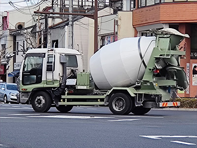 建設現場へ生コンを届ける、わかりやすい「働く車」の一つです。