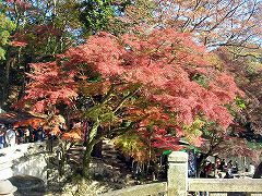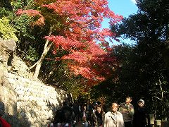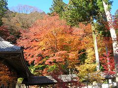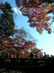 境内の紅葉は写真を見てもらいましょうか。 数だけで言えば去年行った正法寺など比較にすらなりません。 一面、紅、黄、橙のモミジ、モミジ。 周囲が紅く染まっています。見事の一言です。 そして、どちらを向いてもカメラを構えている人たちがいます。 カメラの種類は、写ルンですからK帯からデジカメから一眼レフから…。 撮影してる人の邪魔にならないように避けて歩かなくてはいけない状態で、 紅葉を見ながらも気を使います。 でも、こういう光景を見ると、せっかくの重要文化財も 単なる観光地に成り果ててしまってますね。 |