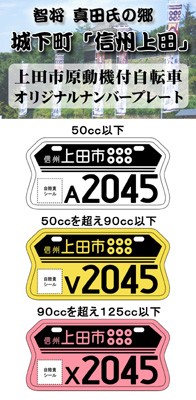 翻って、ニポン国内のナンバープレートを見てみてください。 ニポン初の非定型を生み出した松山市や、 それに続いた大阪府箕面市、長野県上田市の 原チャのナンバー(右画像)の ごくごく一部に凝ったデザインのものがある以外、 |
