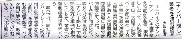 こういうふうに、犯罪の助長につながるため、 法律が改められ、2010(平成22)年10月より ナンバーを覆う一切のカバーの類を付けることが 禁止されます。 ナンバーが汚れるのを防ぐためにカバーを付けているんやと 文句を言う人もいるようですが、 それは言い訳にしか聞こえませんよ(笑)。 |
