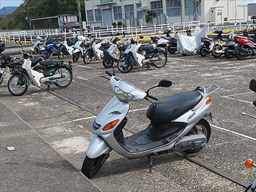 初参加のフロクロ山さんは、〒仕様のバイクで登場。