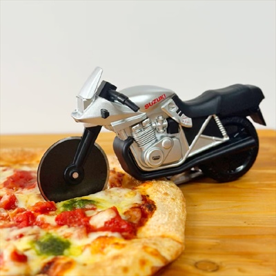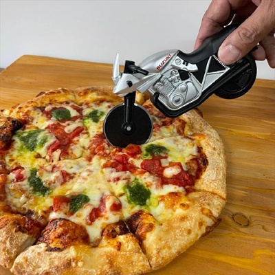 鋭い前輪でピザをカットする、その名も「ピザカッターナ」。