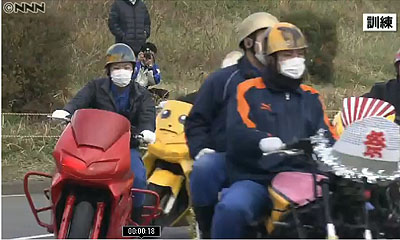 「初日の出暴走」に備え、本番さながらの訓練が行われた。