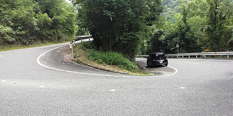 すると、なかなかの勾配のある「?」形の急カーブが。