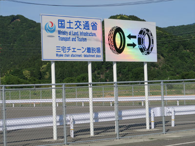 ↓チェーン脱着場も用意されました。しかも国土交通省直々に(笑)。