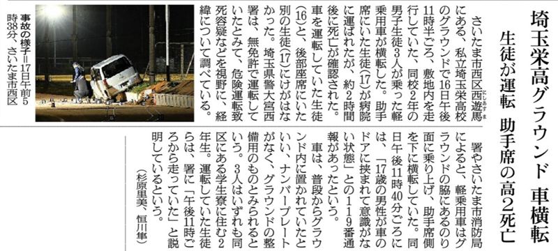 車に乗ってみたい好奇心…、それで前途ある生徒の命が失われたことが痛ましい。